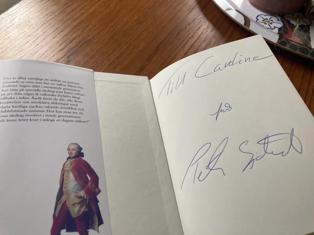 Min inställning till att konsumera litteratur är att lyssna på ljudbok om det finns och endast läsa böcker om det inte finns något alternativ. Anledningen till detta är främst att jag läser mycket långsamt. Alla är vi valloner finns dock endast som bok i dagsläget och eftersom jag verkligen ville läsa den såg jag till att köpa ett exemplar. Det råkade sammanfalla med Föreläsning om DNA- släktforskning med Peter Sjölund på En dag om släktforskning och hembygd på Bohusläns Museum i Uddevalla. Nu har jag ett exemplar signerat av författaren själv. Sedan dess har boken legat och väntat på att bli läst. Det nätta formatet gjorde att den fick följa med till Portugal på min tjänsteresa. Lätt imponerad av mig själv läste jag boken från pärm till pärm under flygresan ner.
